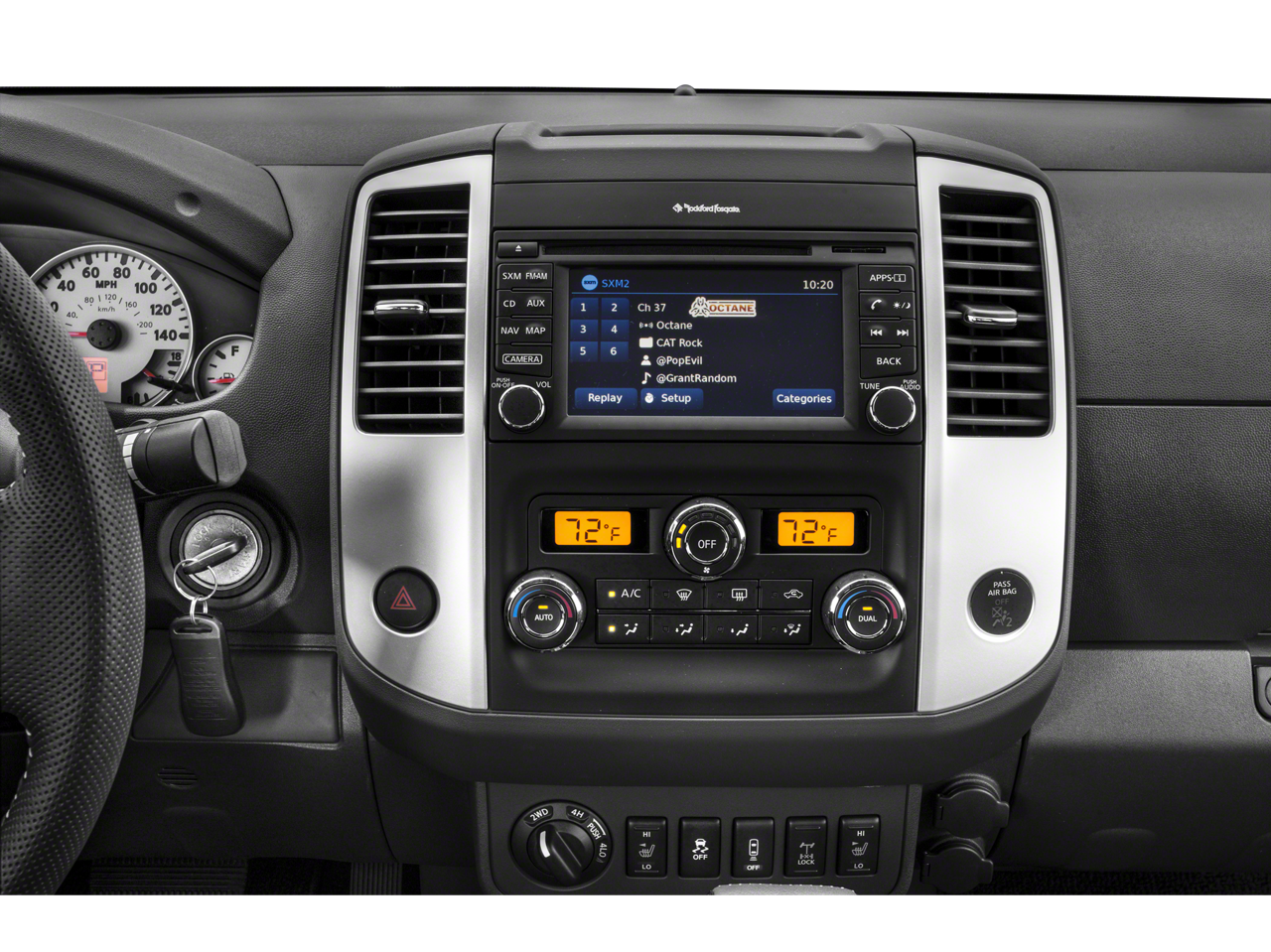 - Radio: Rockford Fosgate Premium Audio System -inc: 10 speakers including subwoofer, NissanConnectSM w/navigation and NissanConnectSM apps, 5.8" color touch- screen display, Nissan Voice Recognition for navigation and audio, SiriusXM satellite radio, SiriusXM Traffic, SiriusXM Travel Link, Smartphone Apps Integration for IPhones and Android phones, USB Connection Port for iPod Interface and other compatible devices, Bluetooth® hands-free phone system, streaming audio via Bluetooth® and hands-free text messaging assistant