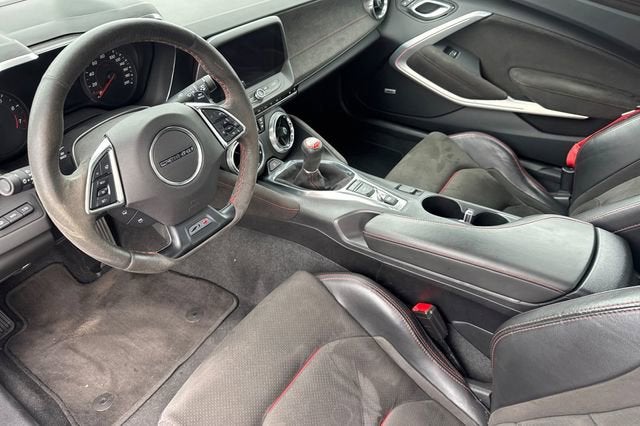 CLEAN CARFAX, LOW MILEAGE, BLINDSPOT MONITORS, APPLE CARPLAY & ANDROID AUTO, Bluetooth®, BACKUP CAMERA, POWER SEATS, KEYLESS START & ENTRY, LEATHER SEATS, HEATED & VENTILATED SEATS, 20 WHEELS, HEADS UP DISPLAY, Camaro ZL1 TRACK PERFORMANCE PACKAGE, 2D Coupe, 6.2L V8 Supercharged, 6-Speed Manual, RWD, Black, Jet Black With Red Accents Leather.