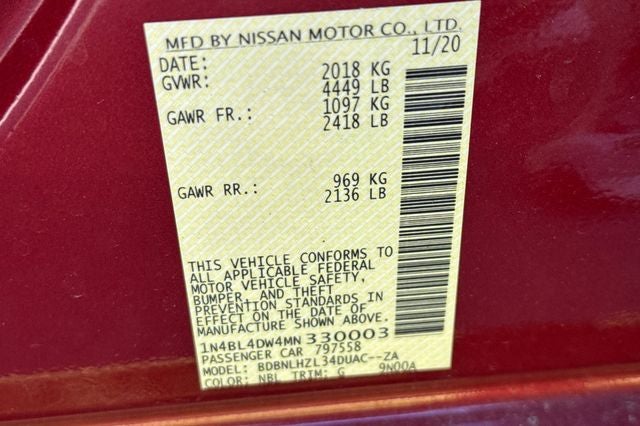 Scarlet Ember Tintcoat 2021 Nissan Altima 2.5 SV SV PREMIUM 4D Sedan AWD 2.5L 4-Cylinder DOHC 16V CVT with Xtronic