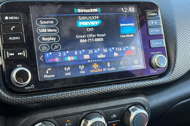 - Radio: AM/FM Audio System -inc: 8" color touchscreen display w/6 speakers, Bluetooth® hands-free phone system, streaming audio via Bluetooth®, Siri eyes free, audio and Bluetooth® steering wheel switches, 3 USB ports (1x front charge and data and 2x rear charge only), type C USB (data and charge) (front), NissanConnect featuring Apple CarPlay, Android Auto, SiriusXM satellite radio w/advanced audio features and hands-free text messaging assistant
