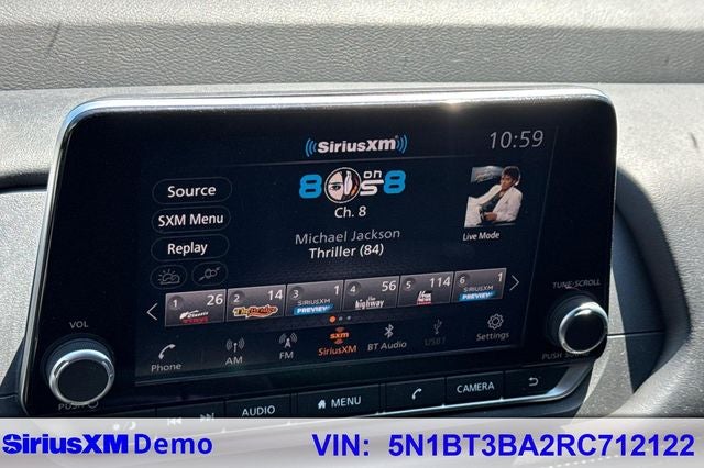 - Radio: AM/FM NissanConnect -inc: 6 speakers plus 2 tweeters, Apple CarPlay, Android Auto, 8" color touch screen display, Bluetooth®, 2 front USB type-C, Wi-Fi hotspot and NissanConnect Services powered by SiriusXM